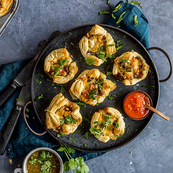 Del butterdeigen i seks deler av hvert brett. Ha dem oppi smurte kopper eller muffinsformer eller noe lignende.