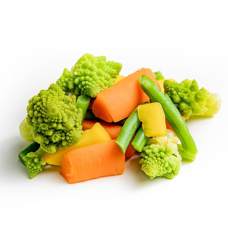 Romanescokål, bønner og gulrøtter gjør denne blandingen spesiell.