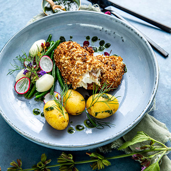 Sprøbakt fisk med rug og havre