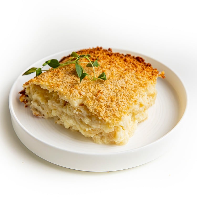 Vår gode gammeldagse fiskegrateng er laget med naturlige råvarer av torskefilet, makaroni og en muskatkrydret saus. Bare naturlige råvarer og med en smak som mange av dine gjester vil huske igjen.