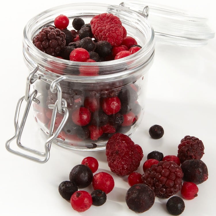 Farge- og smaksrik blanding av bjørnebær, blåbær, bringebær, rips og solbær. Kan brukes til både syltetøy, saft og smoothie. Kommer i pakninger av 1 kg.