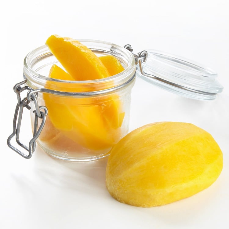 Ferdig skrelt, enkeltfryste - lette å plukke ut en og en. 12 stk pr. brett. Smaker nydelig! Mango er rik på antioksidanter og A-vitaminer og inneholder dessuten en del C-vitaminer og mineraler.