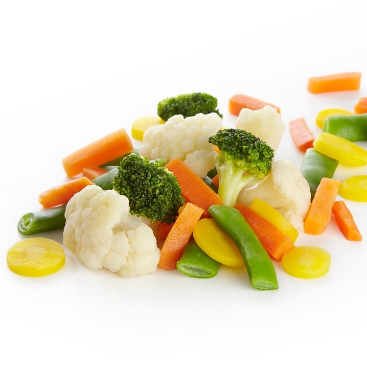 Gulrot, blomkål, aspargesbønner og brokkoli.