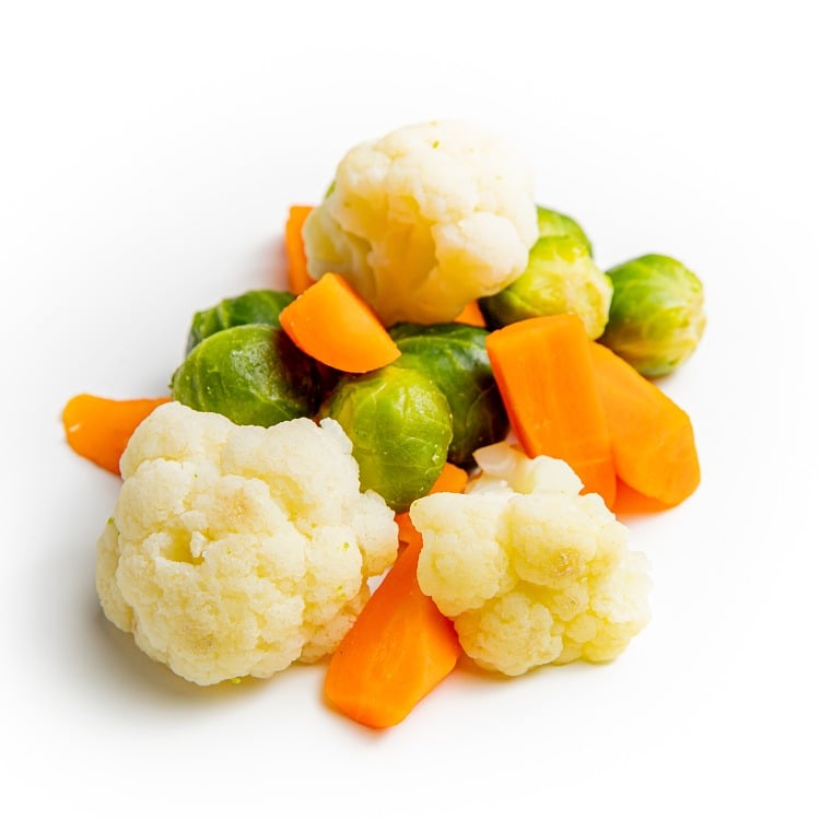 Blomkål, gulrot og rosenkål.