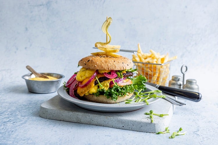 Vann, soyaproteinkonsentrat (sulfitter) 17%, rapsolje, erteprotein, naturlige aromaer, fortykningsmiddel (metylcellulose), byggmaltekstrakt, salt, løkpulver, ertefiber, hvitløkspulver, svart pepper