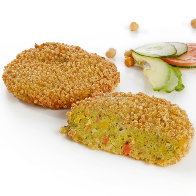 En sunn og «crunchy» vegetar burger med masse smak. Burgeren er satt sammen av bl.a. kikerter, gulrot, blomkål, brokkoli og en smakfull krydderblanding samt en luftig og sprø rispanering.