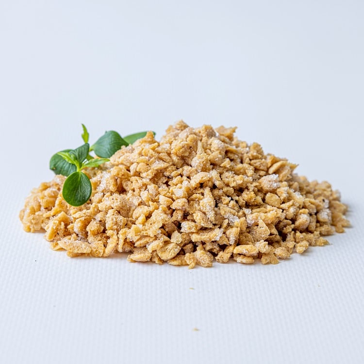 SOYAPROTEIN 85 %, solsikkeolje, aroma, løkpulver, muskat, cayennepepper, hvitløk, epleekstrakt, salt